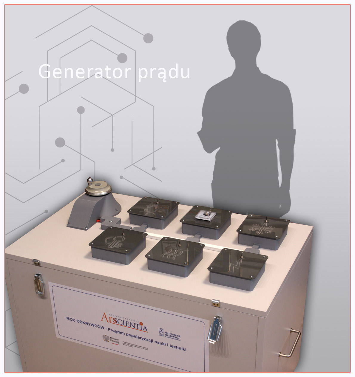 To urządzenie pozwala w dosłownym sensie „poczuć energię”. Uczestnicy, napędzając ręczną przekładnię, wytwarzają prąd zasilający różne odbiorniki – światło, dźwięk czy ruch. Generator uczy, jak działa przemiana energii mechanicznej w elektryczną i jak zależy ona od siły i szybkości pracy.