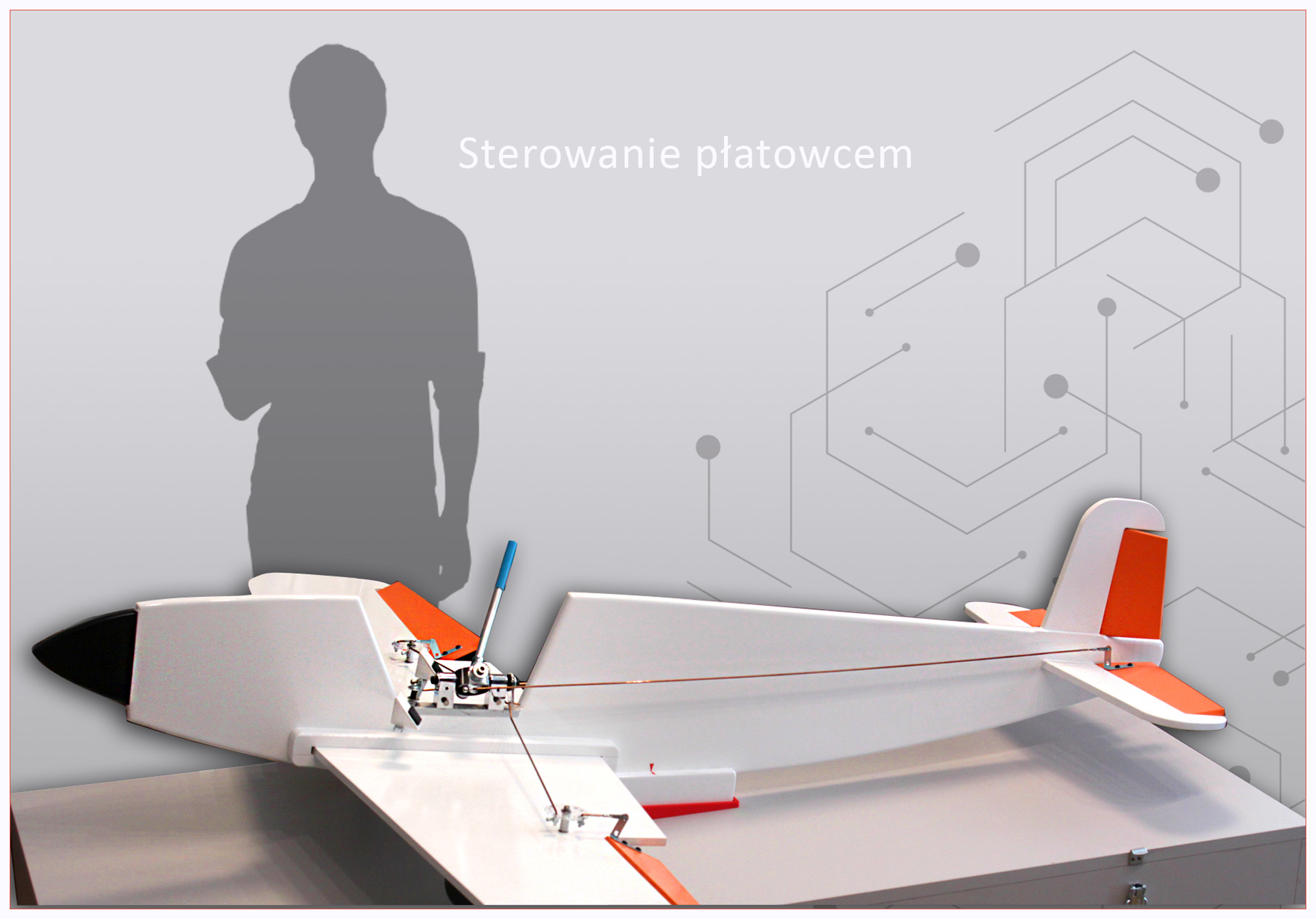 Model przedstawia zasadę działania układu sterowania lotu w samolocie lub szybowcu. Ruchy drążka i orczyka przenoszone są – podobnie jak w prawdziwym płatowcu – na lotki, ster wysokości i kierunku. Dzięki temu odwiedzający mogą zrozumieć, jak precyzyjny jest proces pilotowania maszyny latającej i jak współpracują poszczególne elementy układu sterowania.